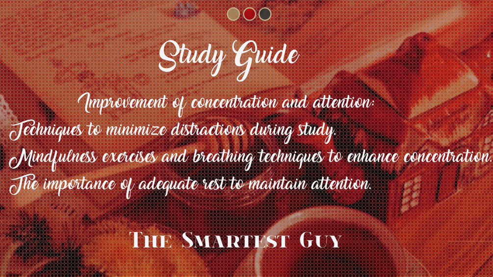 π Techniques to minimize distractions during study sessions, allowing you to stay focused and productive. π§ββοΈ Mindfulness exercises and breathing techniques to boost concentration and calm the mind, promoting deeper engagement with study material. π€ The importance of proper rest and relaxation for maintaining optimal attention levels, ensuring you can stay sharp and attentive throughout your study sessions.